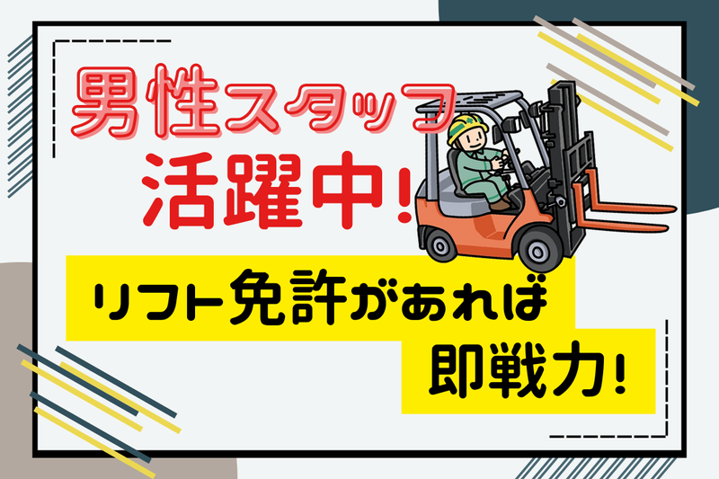 職種/仕事内容 | ■仕事内容 ☆\ 創業70年以上の安定企業♪/ オシゴト内容☆ - ■ 原料を地面の投入口へ投入する作業 ■ 袋詰めされた製品のラベル貼り ■ フォークリフト(カウンター)による 原料・製品の運搬 - *原料は10〜20kg程度 *上記の2つがメインのお仕事です。 【 おすすめポイント 】 □ライン作業ではないため、自分のペースでできます! □じっと作業するより体を動かすお仕事が好きな方にピッタリ☆ □派遣が初めての方も、弊社がしっかりフォローいたします♪ □しっかり教育&サポートがあるから 未経験者でも心配不要! □事前に職場見学が可能です! 見学してから勤務するか決めてOK 少しでも「気になる」と思った方 お気軽にお問い合わせください(*'▽') 【応募資格・条件】 ☆\ 学歴不問・資格不問・未経験OK!/ ■リフト免許をお持ちの方 ■転職検討中の方 ■主婦(夫)さん ■フリーターさん ■ブランクのある方 ■第二新卒の方 ■20代、30代、40代、50代の男性活躍中! みなさん大歓迎です! \ 履歴書不要!/☆ ■登録いただいた方に 交通費として1,000円分のクオカードをプレゼント! *ご自宅近くの登録もOK *登録をしておけば、この求人以外にも 条件に合うお仕事があればご紹介も可能です♪ 【勤務期間】 長期 *勤務開始日はお気軽にご相談ください! 【休日】 □土日祝休み ・GW ・夏期 ・年末年始休暇 ・年次有給休暇 【待遇・福利厚生】 □社会保険完備 □年次有給休暇 □交通費規定支給 □無料駐車場有 □週払い有(規定有) □制服貸与 □定期健康診断 □休憩室有 □ロッカー有 □屋内原則禁煙(喫煙所有) *軽作業、倉庫内作業、工場内作業、現場作業、シール貼り、袋詰め、ライン作業、ピッキング、パッキング、詰替作業、仕分け作業、仕上げ作業、製造、製造補助、商品管理、品質管理、検査、出荷、荷卸し、運搬、組立、搬入、物流、積込み作業などの求人をお探しの方にもおすすめ! *ハローワークでお仕事をお探しの方にもおすすめ *大牟田市、筑後市、柳川市、大川市、八女市、広川町、大木町、久留米市、南関町、荒尾市、和水町からも通勤圏内です ■仕事の特徴 車通勤OK バイク通勤OK 髪型・髪色自由 フルタイム歓迎 長期歓迎 シフト制 週4日以上OK 主婦・主夫歓迎 フリーター歓迎 学歴不問 未経験・初心者OK ブランクOK 中高年応援 資格不問 |