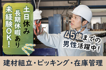 職種/仕事内容 | 仕事内容 ※ライン作業ではございません!【土日お休み・長期休暇有り・未経験OK】2交替or日勤(相談可)勤務☆安全第一で働こう!! <仕事内容> 扱う製品は…『住宅部材(床材、屋根材)』 (6m程度の部材を取り扱います) ●ピッキング・在庫管理 完成した建材のピッキング、在庫管理を行う ●出荷前準備 クレーンで部材吊り上げ、出荷準備を行う 出荷時の伝票確認、荷姿の段取りを行う 数人のチームで一つ一つ確実に作業をしていただきますので、未経験でも安心して作業に取り組めます。 重量物を扱う(15㎏以上)ことがあります。 グループ作業です。 《職場環境》 男性が多い職場です。 休憩室完備 アピールポイント <仕事内容> 扱う製品は…『住宅部材(床材、屋根材)』 (6m程度の部材を取り扱います) ●ピッキング・在庫管理 完成した建材のピッキング、在庫管理を行う ●出荷前準備 クレーンで部材吊り上げ、出荷準備を行う 出荷時の伝票確認、荷姿の段取りを行う 数人のチームで一つ一つ確実に作業をしていただきますので、未経験でも安心して作業に取り組めます。 重量物を扱う(15㎏以上)ことがあります。 グループ作業です。 《職場環境》 男性が多い職場です。 休憩室完備 \充実した福利厚生/ ◎社会保険・雇用保険完備 ◎有給休暇有(6ヶ月経過後、10日付与)※規定あり ◎残業手当 ◎交通費支給(規定内) ◎確定拠出年金制度 ◎週払い制度(週3回対応) ◎お友達推薦制度あり(規定有り) ※1名につき3万円~10万円臨時給与として支給 ◎車(マイカー)・バイク通勤可(無料駐車場あり) ◎制服貸与 ◎食事持参可 ◎食堂あり(1食450円程度※給与天引き) ◎休憩室利用可 ◎福利厚生プログラム (宿泊、グルメ、ショッピングなど大幅割引が受けられる10万アイテムのメニューがあります。) |