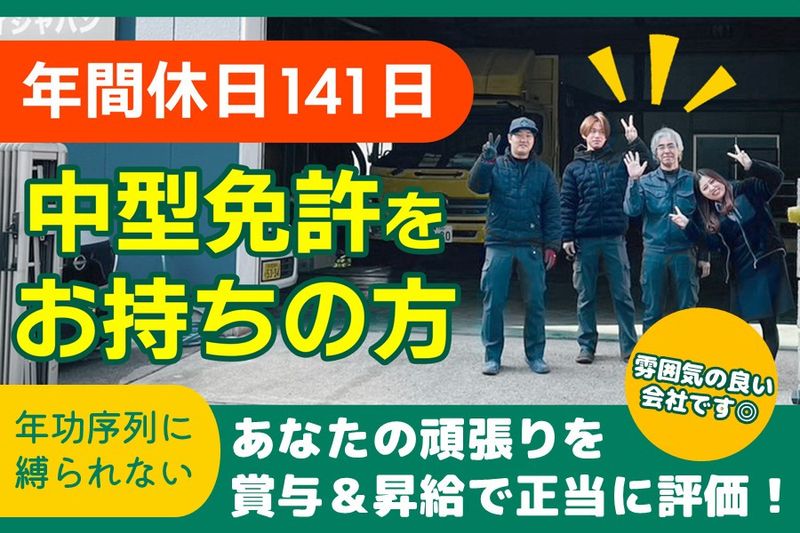 【中型免許をお持ちの方】✅週休2日制(土日)✅長期連休あり✅長期安定✅昇給賞与あり✅人柄重視の採用