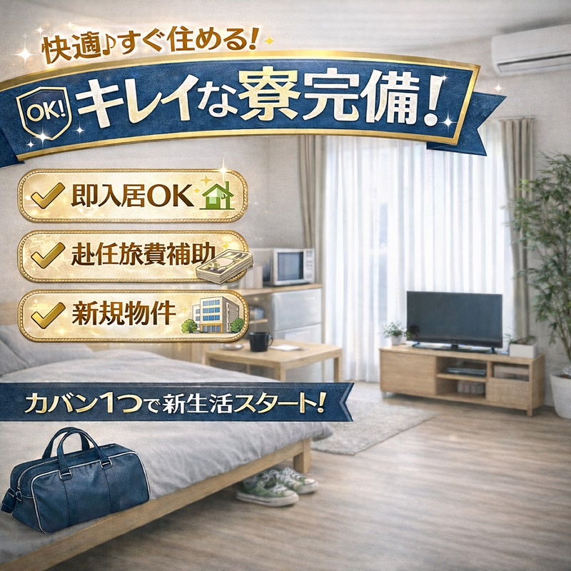 給与 | 時給1,400円以上 給与詳細 基本給:時給 1400円 〜 週払い制度有、寮完備(家電付き)、 交通費支給 、社会保険完備、各種手当あり |