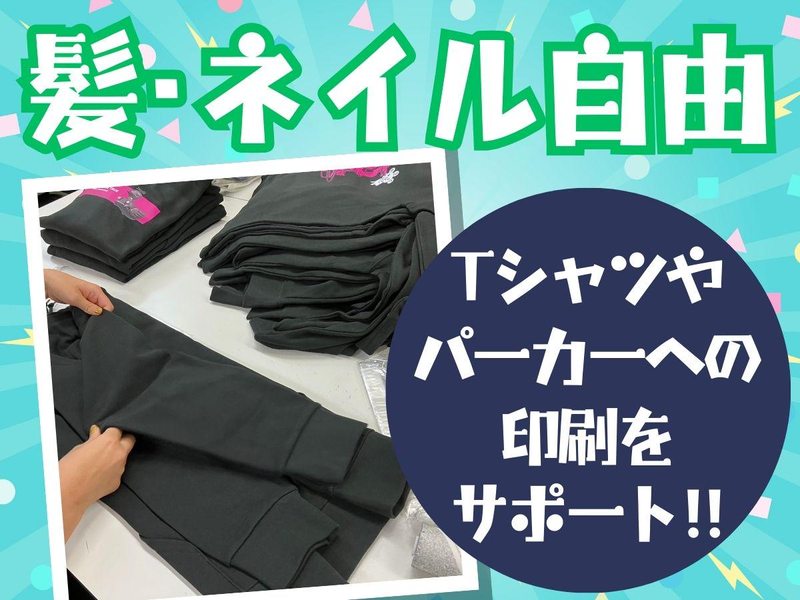 職種/仕事内容 | 仕事内容 *"・。。・"*"・。。・"*"・。。・"*"・。。・"* ★「好き!」に囲まれた空間★ ★このお仕事のオススメポイント★ 人気のアニメキャラなどを扱うお仕事! 髪型・服装自由♪自分らしく働ける! 未経験OK!しっかりサポートで安心☆ *"・。。・"*"・。。・"*"・。。・"*"・。。・"* -Oo。 仕事内容 。oO- Tシャツ・パーカー・ トレーナーなどアパレル商品の 印刷業務に携わっていただきます♪ 中には、人気のアニメキャラクターを 用いたものもあります! ・商品の検品作業 ・梱包・出荷準備 ・印刷機オペレーターのサポート ・印刷データ作成補助(経験者) 印刷機の操作に慣れてきた方には、 印刷データの作成に 挑戦することも可能です! - お電話でのお問い合わせも大歓迎! TEL:052-212-8595(採用担当まで) - >>> 未経験の方大歓迎◎ <<< お仕事はしっかりマンツーマンで サポートしますので安心です! illustrator(イラストレーター)が使える方 は特に歓迎いたしますよ♪ |