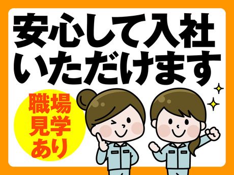 職種/仕事内容 | 仕事内容 \座ってできる!カンタン軽作業ワーク♪/ 【お仕事の内容】 手のひらサイズの軽い部品を使って、 測定機器を手作業で組み立てていきます! ライン作業ではないので、 自分のペースでコツコツ集中できます♪ 【POINT】 ・重いものナシ!座ってラクラク作業♪ ・未経験から始めた方が多数活躍中! ・冷暖房完備でいつでも快適◎ ・女性スタッフが中心の穏やかな職場です! 【働きやすい環境】 ・日勤のみ&基本は土日祝休み ・実働7時間で家庭との両立も◎ ・残業ほぼナシ!夕方からは自分時間♪ 「久しぶりに仕事復帰したい」 「家庭と両立しながら働きたい」 そんな方は特にぴったりの安心の職場です♪ 【よくある質問】 ●Q&A 1|経験について Q:未経験でも応募できますか? A:大丈夫です!まったくの未経験でも安心してスタートできます◎ 実際に、今働いているスタッフも未経験スタートの方が多数♪ 「初めてで不安…」という方も、イチから丁寧に教えてもらえるのでご安心を! ●Q&A 2|どんな人が働いてる? Q:今働いてる人ってどんな人? A:女性スタッフ中心に20代から30代・40代・50代の中高年世代まで幅広い世代が活躍中です! ●Q&A 3|勤務開始日は? Q:面接から働き始めるまで、どれくらいかかりますか? A:早ければ面接から1週間ほどで勤務スタート可能です! ただ、職場見学の日程調整などもありますので、 「この日から働きたい」「この週は予定があって…」 といったご要望と調整しながら柔軟に対応します! |