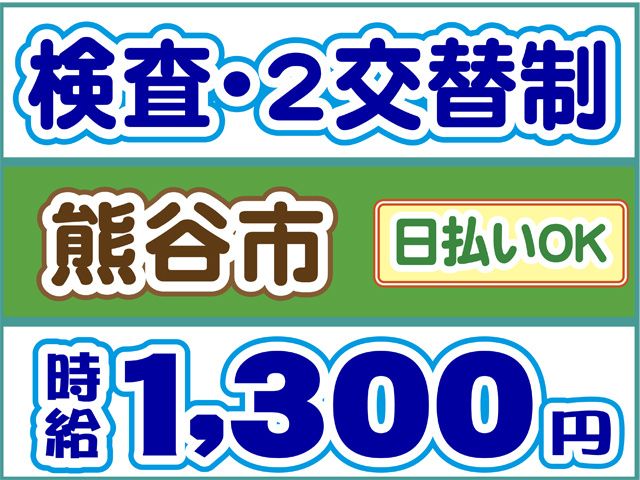 【熊谷駅から車で15分】 検査業務の経験ある方/稼げる2交替/土日休み 履歴書不要・日払いOK