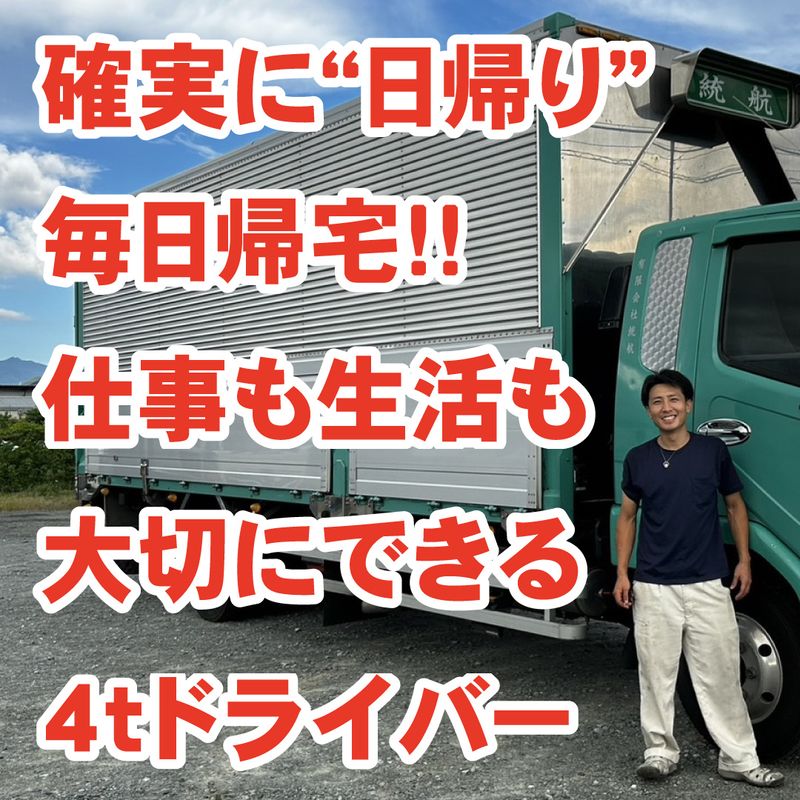 その他 | 職種補足 【4トン中型ドライバー】山梨県内外への一般貨物配送 社員インタビュー 統航で働く理由と魅力を、 2人の社員さんに聞いてみました。 【30代・既婚・幼稚園に通う子ども1人】 <「運転が好き!」から始まったドライバーの道> もともと運転が好きだったことに加え、 友人がトラックに乗っているのを見て 自分も挑戦してみたいと思ったのが、 この仕事を始めたきっかけです。 トラックに乗ることへの憧れもありましたし、 さまざまな地域に行けることで 道に詳しくなれるのも魅力でした。 実際に働いてみると、 新しい場所へ行くたびに発見があり、 楽しみながら仕事ができています。 <家族との時間を大切にできる> 統航で働き続けている理由の一つは、 家庭との両立がしやすいことです。 子どもの迎えの時間に間に合うよう 調整できる点はとても助かっています。 また社長や専務が親身に相談に 乗ってくれるため、 家族の事情に対しても柔軟に 対応してもらえるのがありがたいですね。 <職場の雰囲気が良く、働きやすい> 職場の仲間も気さくで、 みんなが相談しやすい環境を 作ってくれています。 ファミリーのような雰囲気があり、 仕事の悩みやちょっとしたことでも 話しやすいので安心して働けます。 また、取引先の倉庫の方々も 親切な方が多く、積み卸しの際も 気持ちよく作業ができるのが嬉しいですね。 <自分らしく働ける自由さも魅力> トラックに自分好みの飾りを つけることができるのも、 モチベーションの一つになっています。 さらに、仕事の進み具合によっては 早く終わる日もあり、 効率よく働くことができます。 そして何より、頑張れば その分給与に反映されるので、 やりがいを感じながら 働けるのが統航の魅力です。 <仕事を楽しみながら続けられる環境> 配送先ではご当地グルメを楽しむ機会もあり、 ちょっとした楽しみが 仕事のモチベーションにもつながっています。 統航で働くことで、仕事だけでなく 日常にも新しい発見があり、 やりがいを感じながら続けられています。 【40代・既婚・子どもは高校生1人、中学生1人】 <好きな運転を続けられる仕事> 以前からドライバーとしての 経験は豊富でしたが、 統航に転職を決めた大きな理由の一つは 「ウイング車に乗りたかった」ことです。 もともとトラックの運転が好きで、 統航の業務は以前の一般貨物の仕事と 似ていたこともあり、 違和感なくスタートできると感じました。 さらに、職場の雰囲気がアットホーム だったことも決め手の一つでしたね。 <自由度の高さとシンプルな業務が魅力> 統航で働き続けている理由の一つは、 仕事のシンプルさです。 「荷物を積んで、卸して、帰ってくる」 という流れが明確で、 余計な負担が少ないのが魅力ですね。 また、最低限のルールさえ守れば、 自分のペースで自由に 働ける環境も気に入っています。 <トラック好きにはたまらない環境> 統航では、トラックを自分好みにいじれるので、 車両にこだわりを持つ自分にとっては 最高の環境です。好きなトラックに乗って、 シンプルに仕事をこなし、 自由なスタイルで働ける。 このバランスの良さが、 統航に長く勤めている理由です。 雇用形態 正社員 社会保険 健康保険あり,厚生年金あり,雇用保険あり,労災保険あり 試用期間 あり 月給268,605円 試用期間最長3ヶ月(条件変わらず) ※能力・経験による 喫煙環境 喫煙所あり 担当者 採用担当/木村 受付先名 有限会社統航 〒405-0078 山梨県笛吹市一宮町田中774 TEL:0553-47-7152 |