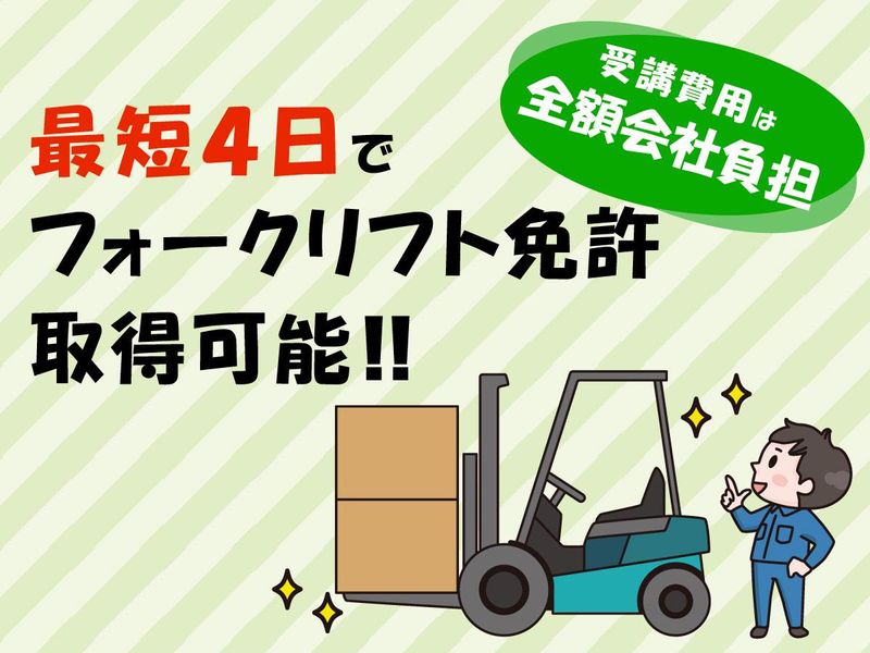 最短4日でフォーク免許取得可★費用会社負担・受講中も給与発生
