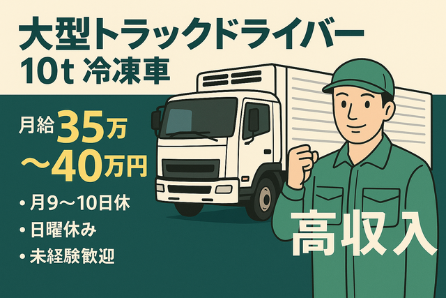 月給35万円〜40万円|月9〜10日休みでしっかり休める|10t冷凍車での幹線配送