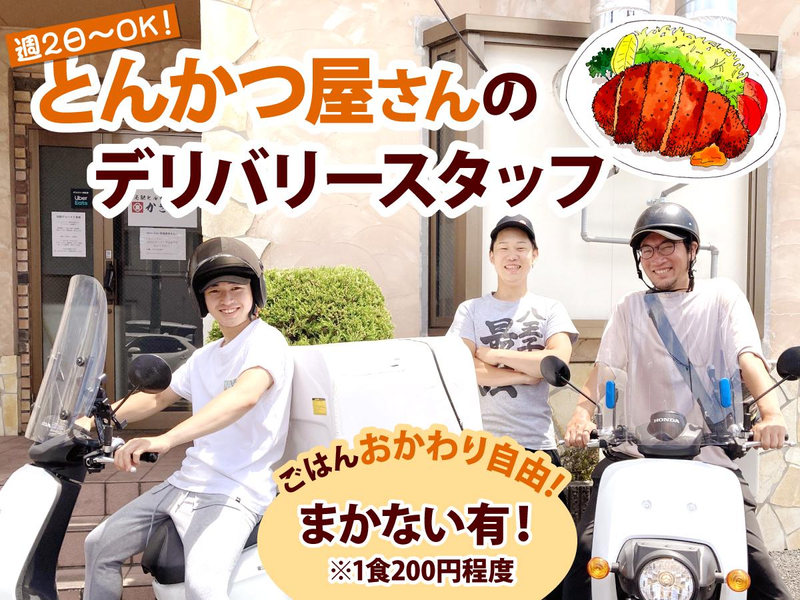 職種/仕事内容 | 仕事内容 全国に160店舗以上も展開する とんかつチェーン店「かさねや」が 東大阪店でスタッフを緊急で大募集! 仕事の流れはシンプルで簡単! ・注文が入る ・キッチンスタッフが作る ・積み込んで届ける それだけ! デリバリーでは原付での お弁当配達をお願いします。 4時間の稼働で約15件の配達です。 配達ノルマ、力仕事は一切なし。 配達のほとんどが置き配なので お客様とのやりとりは 比較的少な目です。 <配達の流れ> (1)キッチンスタッフが作った お弁当をビニール袋に入れて 保温バッグに詰めます。 それを原付の荷台に乗せて出発! (2)片道15分圏内の配達先 (個人店やオフィス)にお届け。 バイクにはスマホホルダーも ついているので、経路を見ながら 運転できて安心です。 ルートを覚えて時間通りに 配達していただければOK! だんだん自分のペースで 配達できるようになってきます。 配達の無い時間帯は簡単な 付随業務をお願いしています。 |