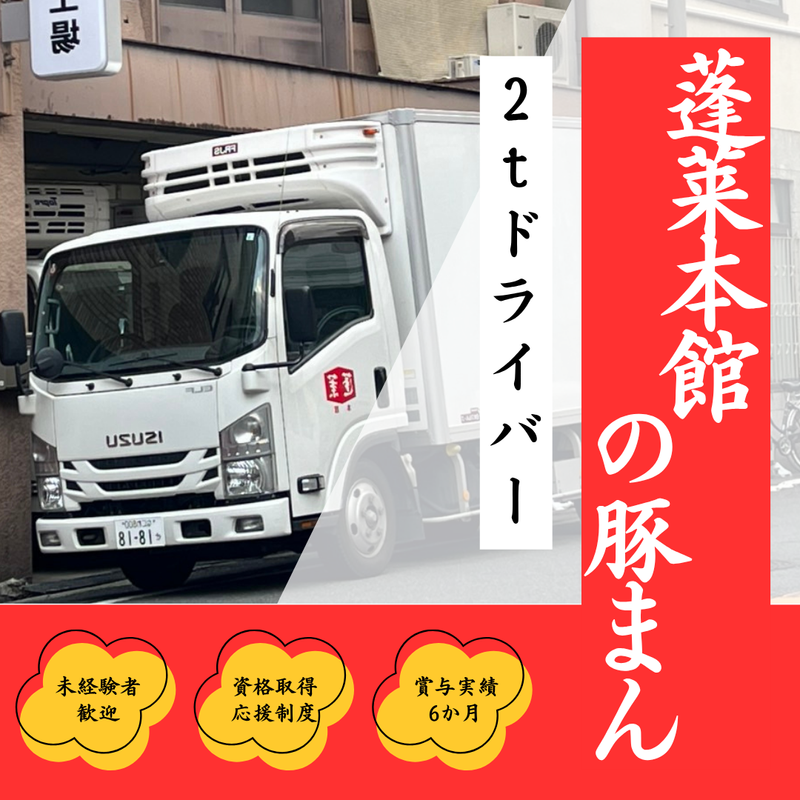 職種/仕事内容 | 仕事内容 スーパー等で販売される当社のチルド・冷凍商品(豚まん・焼売など)を、 決まったお取引先へお届けするルート配送のお仕事です。 【普通免許があればOK!費用は会社が全額出します】 「AT限定しか持っていない」「今の免許でトラックに乗れるかわからない」という方もご安心ください。 業務に必要な「AT限定解除」も「準中型免許(5t限定解除)」も、取得費用は会社が全額負担します! ★教習に通う期間も、もちろんお給料は発生します。 ★免許センターや教習所の手続きもサポートします。 「運転は好きだけど、トラックの免許がない」という方、ぜひその熱意を当社で活かしてください。 【具体的な仕事内容】 ・配送エリア:近距離エリアの固定ルート ・配送件数:1日5〜10件程度(無理のないスケジュールです) ・使用車両:2tトラック ・付随業務:簡単な出荷準備(ピッキング)、在庫確認など <ここがポイント> 運送業のような「歩合で稼ぐために寝ずに走る」仕事ではありません。 メーカーの物流部門として、「安全に・決まった時間に・定時で帰る」ことが評価される環境です。 【入社後の流れ(未経験・育成前提)】 1.同乗研修からスタート 先輩社員のトラックに同乗し、ルートや荷物の扱い方を学びます。 (並行して、業務時間内に教習に通い、必要な免許を取得していただきます) 2.簡単な作業から担当 ピッキングや積み込み補助など、できることから少しずつお任せします。 3.徐々に運転・配送へ 免許が取れて慣れてきたら、短いルートから配送を担当。 「習うより慣れろ」ではなく、自信がつくまでしっかり教えます。 【体の負担について】 商品の積み降ろしは手作業(最大20kg程度)ですが、 1日の件数が少なく、移動時間(運転)もちゃんとあるため、 「一日中、荷物を運んでヘトヘト…」ということはありません。 ほどよく体を動かしたい方にピッタリです。 【1日の流れ(例)】 08:30 出勤、ピッキング、積み込み 午前中 配送(安全運転で!) 12:00 休憩(昼食は「仕出し弁当」を支給します!) 午後 配送、帰社後の片付け 17:30 退勤(家族との時間や趣味の時間を持てます) 【まとめ:蓬莱本館で働くメリット】 ・賞与年2回、退職金制度あり ・お弁当支給で食費が浮く ・年間休日113日(今後120日へ増やす予定) ・転勤なし、地元で長く働ける ・免許取得支援あり(AT解除・準中型解除ともに全額会社負担) |