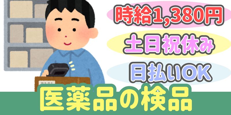 職種/仕事内容 | 仕事内容 クリーンルーム内で、医薬品を検品するオシゴト ほかにも、梱包や包装作業などもお願いします 未経験でも問題ナシ!かんたん軽作業 出張面接いたします!就業前の職場見学OK! まずは、ご応募からお待ちしております! 20歳~40代後半の男性活躍中! ・就業先は、館林工業団地内 オススメpoint ・うれしい土日祝休み ・午後にサービス休憩あり ・作業着&靴はうれしい貸与 ・仕出し弁当(1食410~480円)あり ・ロッカー完備 ・駐車場あり マイカー通勤でらくらく ・未経験OK ・土日祝休みご希望の方 ・日勤のお仕事お探しの方 ・長期で働きたい方 ・もくもく×コツコツ作業がお好きな方 ・かんたん軽作業ご希望の方 ・残業ほぼナシ!定時にピタッと退社したい方 【こんな経験活かせます!】 パート、アルバイト、契約社員 雇用形態問わず、下記の経験ある方は活かせます! ・倉庫内(構内)作業 ・工場作業 ・軽作業 ・梱包 ・検査 ・包装 ※もちろん必須ではありません! まずはお気軽にご応募ください ///////////////////////////////////////// (WEBでご応募の場合) お電話番号を記入していただくと ご案内がスムーズです。 ///////////////////////////////////////// |
