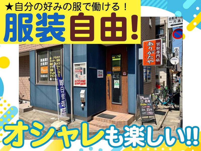 職種/仕事内容 | 仕事内容 ◤ ̄ ̄ ̄ ̄ ̄ ̄ ̄ ̄ ̄ ̄ ̄ ̄ ̄ ̄ ̄ ̄ ̄ 完全週休2日×月給23万円スタート 未経験から“プロの査定士”を目指せる! _________________◢ \服装自由×駅チカ×仲良しな職場♪/ 葛西駅から徒歩3分&自転車通勤OK! 20~30代が活躍中の明るい雰囲気で フリーターから社員になった先輩も多数! ⭐完全週休2日で無理なく働ける⭐ ―・―・―・―・―・―・―・―・―・―・― 仕事もプライベートも両立しながら 収入もキャリアも着実に成長できる! 誠実な査定スタイルで地域からも信頼♪ “査定士”という一生使える武器が手に入る ─────────────────── ✅月給23万~40万円スタート ✅完全週休2日制&長期休暇あり ✅昇給あり&賞与年2回支給 ✅住宅手当あり&交通費全額支給 ✅服装自由(襟付き)&髪型も自由 ✅未経験歓迎&研修マニュアル完備 ✅キャリアアップ制度あり ✅仲の良い20~30代の若手中心 【お仕事内容】 宝石・時計・ブランド品などの 買取査定を中心に、ネット販売や修理など 幅広くスキルが身につく仕事です。 未経験でも丁寧に教えるので安心♪ ✅宝石・時計・ブランド品の査定・買取 ✅商品のチェックや簡単な補修作業 ✅スマホ修理 ➤マニュアル完備&丁寧な指導あり! ➤慣れたら、ゲーム機やタブレット修理 ✅ECサイトへの出品、梱包・発送業務 ✅金券など簡単な商品の買取 ✅買取ブログの更新・情報発信 ⭐宝石・時計の専門知識を身につけ、 将来も役立つスキルを習得できます。 ⭐「目の前査定・ごまかしなし」の誠実 スタイルで地域に信頼される仕事です。 ⭐地域密着の店舗で、常連のお客様も多く、 落ち着いた雰囲気の中でじっくり接客 できます。 【キャリアアップ】 ・責任者へのキャリアステップも可能 ・経験を積めば「査定のプロ」 として社内の中心的存在へ ・将来的にバイヤーや修理の 専門職として独立を目指す道も◎ ・―・・―・・―・・―・・―・・―・・―・・―・・―・・―・ |
