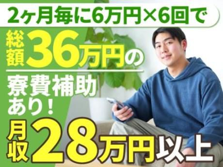 総額36万円の寮費補助あり!月収28万円以上可能!土日祝休み!20~40代の男性活躍中!