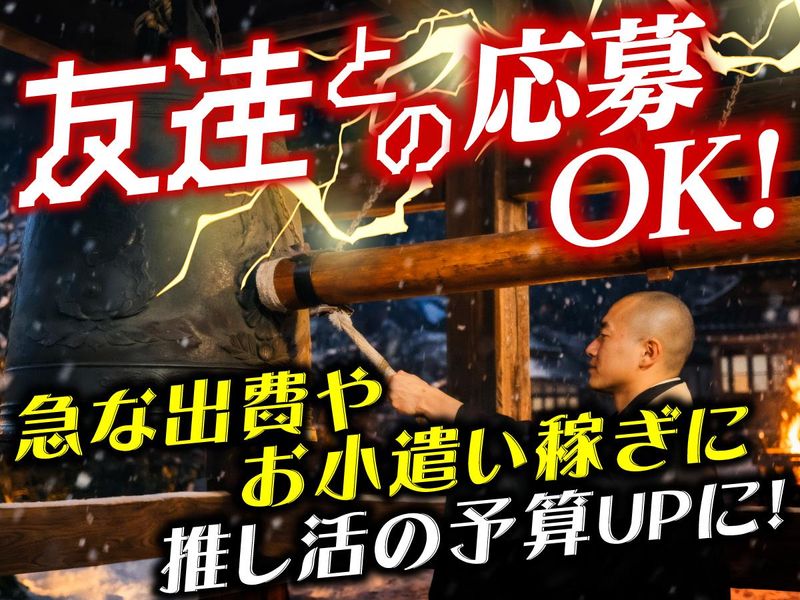 職種/仕事内容 | 仕事内容 / ⭐18歳~30代がメインで活躍中! ⭐シフト自由!!週0日もOK!! ⭐早上がりも日給保障!! ⭐大学生・フリーター歓迎! ⭐5回目の勤務でボーナス5000円!(給料日支給) \ ✧・:・。✧・:・。✧・:・。✧・:・。✧・:・。✧・:・。✧ ✨3秒でわかる!このバイトの魅力✨ ✧・:・。✧・:・。✧・:・。✧・:・。✧・:・。✧・:・。✧ ✅ 激レア体験が待ってる! 有名アーティストのライブやアニメの イベントなど、普段は見られない 「裏側」で活躍!同年代の仲間と、 忘れられない思い出を作ろう! ✅ 超柔軟シフトでプライベートも充実! 「今週は週0、来週は週5」 「授業後だけ」もOKな完全自由シフトで 好きな時に働けます ♪ 履修登録やテスト期間、Wワークの予定 にも100%対応します。 ✅ 履歴書不要&オシャレ自由! 髪色・ネイル(※規定あり 長さ0.5cm前後 ご相談ください)ピアス自由で、 自分らしく働けます 。 思い立ったらスマホひとつですぐに 応募できる手軽さも魅力です。 [仕事内容] 女性アイドルグループの ステージや客席、関連ブースの 組み立て・片付けなどをお願いします 。 巨大なステージがゼロから組み上がる 様子は圧巻!チームで協力して一つの 空間を作り上げる、達成感バツグンの お仕事です。 先輩スタッフが丁寧に指示するので、 未経験でも全く問題ありません 。 ✧・:・。✧・:・。✧・:・。✧・:・。✧・:・。✧・:・。✧ ✨ 応募方法 ✨ ✧・:・。✧・:・。✧・:・。✧・:・。✧・:・。✧・:・。✧ ~公式LINEから応募可能!~ QRコードもしくは下記IDをご登録の上、 応募した勤務地名とご希望の日程をお知らせください★ ▷ID:875cvfww ▷URL:https://lin.ee/9ljyK4p ~webの場合~ 応募ボタンをクリック(1分で完了) 弊社からお電話 (03-6733-7324) にてご連絡します。 ~電話の場合~ 番号:03-6733-7324 『求人を見た』とお伝えください。 |