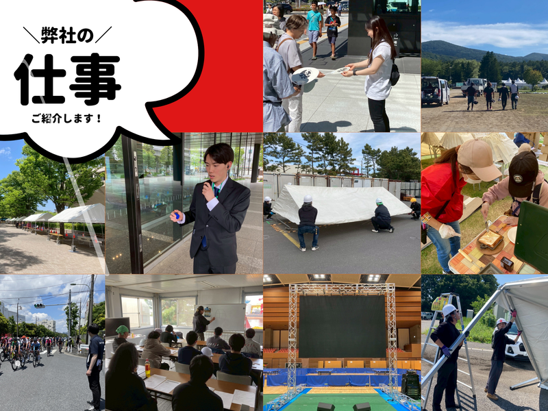 職種/仕事内容 | 仕事内容 ✅ 就活に役立つスキルが得られる! ✅ イベントの裏側が見られる! ✅ 査定システムあり、他充実手当多数 イベントを通じて、 自分を成長させてみませんか? この仕事で身につくのは、 いわゆるバイト慣れではありません。 「初対面の大人と一緒に仕事をする」 「時間と段取りを意識して動く」 「ミスが起きないよう先を読む」 こうした経験は、就活や社会人生活、 どんな仕事でも、あとから確実に 活きるスキルとなります。 ✦・┈┈┈┈┈┈┈┈┈┈┈┈┈┈ ・✦ ■具体的な仕事内容 ・イベントブースの組み立て作業 ・会場レイアウトの調整 (机やパネルの配置など) ・会場の装飾、備品の設置や片付けなど ▼ 勤務地・案件例 ▼ ・東京ビッグサイト ・幕張メッセ ・東京国際フォーラム ・Kアリーナ ・パシフィコ横浜 ・新宿NSビル など 展示会・国家試験会場・大学入試関連業務・ ライブ・スポーツイベント案件も多数! ✦・┈┈┈┈┈┈┈┈┈┈┈┈┈┈ ・✦ ⭐実際に働いている人の声 ≪⼤学4年⽣ Oさん≫ 友達から誘われたのが最初のきっかけ でした︕イベント⾃体も好きだったし、 裏⽅の仕事にも興味があったので…。 同年代のスタッフも多く、 仲間が増えました。オフにみんなで スノボに行ったりもします。 みんな本気で取り組んでいるから、 仕事もプライベートも気が合う仲間ができます! ≪大学生Kさん≫ 色々な現場をこなしていくうちに、 リーダーを任されるようになりました。 リーダーをやると、大人の言っていた事が わかってきた気がします。 達成感も増えます。 そうなってから、毎回仕事が楽しいです! ≪正社員Mさん≫ 月1バイトから始まり、イベント運営に ハマって社員になりました。 施工や運営、いろいろな内容で イベントに携われ、とても楽しいです。 ✦・┈┈┈┈┈┈┈┈┈┈┈┈┈┈ ・✦ |