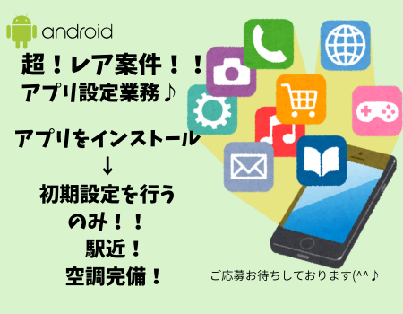 職種/仕事内容 | 仕事内容 / ★オープニング募集★ 週3日~勤務OK♪モクモク作業で安定収入GET☆彡 \ 【お仕事内容】 タブレット・パソコンの初期設定をしていただきます♪ マニュアルに沿ってアプリのインストール・設定をする簡単な作業です。 ※パソコンの設定などをお願いする場合もあります。 ※むずかしい操作はありません◎ ★基本的に座って作業できます!(状況により立ち作業の場合もあり) ★機械系は苦手だな…そんな方も安心◎同期もたくさん◎ ★暖房が効いた部屋でモクモク設定作業♪ \マニュアル完備で、スマホ操作ができればOK☆彡/ 未経験・ブランクのある方も大歓迎です◎ 【持参をお願いします】 ※かかとのある上履き(なければ着用靴の裏面がキレイであればOK) ※マスク ※水分補給できる飲料 ※昼食 |