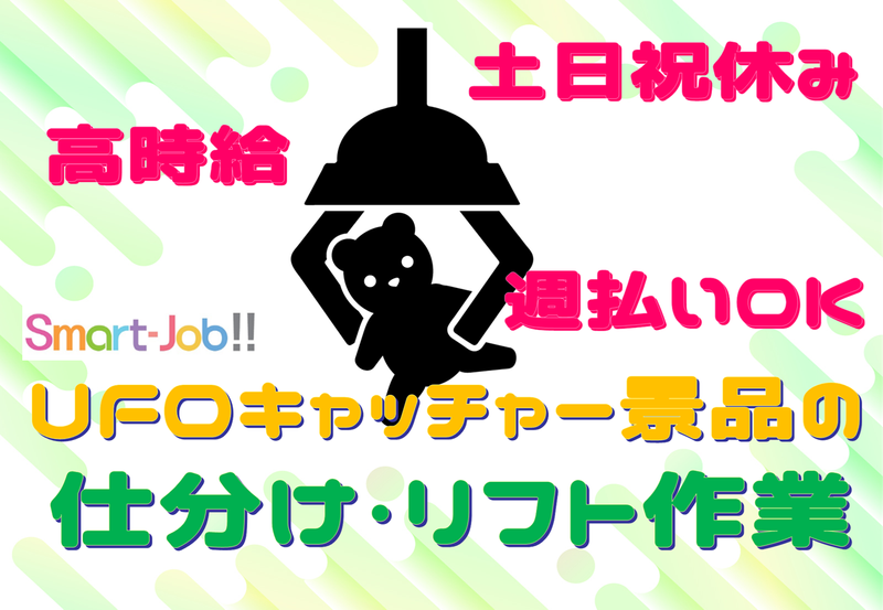 職種/仕事内容 | 仕事内容 UFOキャッチャーで人気のぬいぐるみ・キャラクター小物・マグカップなど(すべて10kg未満)の商品を取り扱う倉庫で、フォークリフト(リーチリフト)の資格を活かせるお仕事です。 主な業務は、リーチリフトを使った商品の運搬やパレットの移動、出荷準備。 軽量な商品のみの取り扱いなので、重い荷物を持つことはありません。 体力面が心配な方や負担の少ない作業をご希望の方にもピッタリです。 リフト操作だけでなく、商品ピッキング・仕分け・ハンドリフトでの積み込みなどの軽作業も交替して担当するため、同じことの繰り返しになりにくいのが特徴。 身体を適度に動かしながら、リズムよく働けます。 未経験やブランクのある方も安心。 入社後は、頼れる先輩スタッフが一つひとつ丁寧に指導します。 実際に「資格取得直後」「リフト実務経験が浅い」「現場復帰」という方も多数活躍中。 不安があっても、気軽に相談できる明るく協力的な職場です。 勤務地は大阪市西成区。 大阪市中央区・大阪市住之江区・大阪市北区・大阪市から通うスタッフも多く、駅近で通勤らくらく。 車・バイク・自転車通勤も可能なため、ご自宅やライフスタイルに合わせて通勤方法を選べます。 清潔で冷暖房完備の快適な環境、20代~50代の男女スタッフが在籍し、新しい環境でも馴染みやすい雰囲気です。 日祝休み&高時給で働きやすさ抜群。 社会保険完備・有給・長期休暇・週払いOKなど福利厚生も充実しています。 「資格を活かしてしっかり稼ぎたい」「新たな仕事にチャレンジしたい」「無理なく長く働きたい」そんな方に最適な職場です。 あなたのご応募をお待ちしています。 |