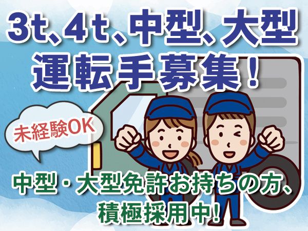 対象となる方 | 資格・経験 45歳迄 (長期勤続によるキャリア形成をはかるため 省令3号のイ) 要普通免許 ※19年6月の法改正後取得の方は 要準中型免許以上が必要です ※フォーク・玉掛・クレーンをお持ちの方優遇 【こんな方も歓迎】 ・休みがしっかりとれる環境で働きたい方 ・運転に集中できる仕事を探している方 【以下のご経験をお持ちの方もお待ちしております!】 トラックドライバー / トラック運転手 / 2t・3t・4tドライバー ルート配送 / 運送ドライバー / 配達業務 / ダンプ運転手 トレーラー ドライバー/海上コンテナドライバー/大型運転手 |