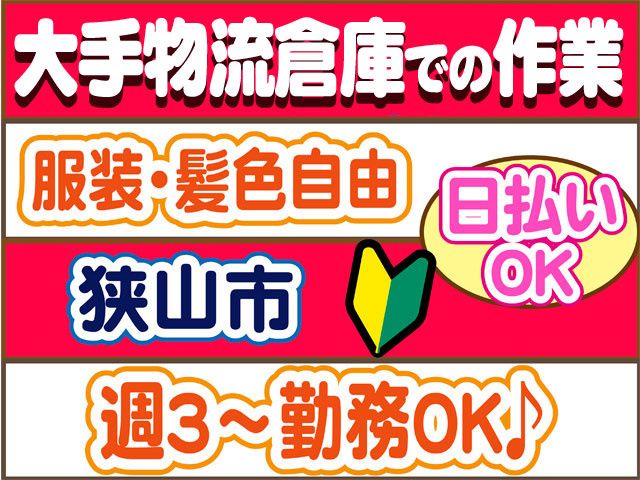 職種/仕事内容 | 仕事内容 長期安定・大手通販サイトの倉庫内入出荷作業 選べる勤務時間、ご家族・お友達と一緒もOK 周辺4駅(狭山市駅、入間市駅、東飯能駅、川越駅)から 無料シャトルバスありで通勤ラクラク 「ポイント」 〇未経験OK 〇日勤、時間選択OK 〇週3日から勤務OK(希望休も応相談) 〇時給1280円スタート 〇私服勤務、髪色・髪型自由 〇空調完備、カフェテリア・売店、個人ロッカーあり 〇20代30代40代50代男女活躍中 〇日払いOK(規定内) 〇履歴書不要 〇交通費支給(規定内) 「仕事内容」 狭山市にあるインターネット通販大手の 大型物流センターでの 入出荷に関連した各種作業をお任せします 具体的には 〇コンテナから商品取り出し、機械で読み込み モニターの指示に従って商品の棚入れや梱包 〇ハンディターミナルを使って 指定の棚から商品を探して取ってくるピッキング 〇ベルトで流れてくる梱包済みの商品を ハンディで読み取ってカゴ台車に入れていく作業など ※初日に配属された部署のお仕事をメインで行います ※扱う物は、日用品・雑貨・食品 家電・おもちゃ・ゲーム機など様々です。 「勤務について」 ・日勤のみ ※時間帯選べます ・出勤日は週3日からOK ※土日のどちらかは出勤必須 シフト制(週休2日、週休3日~4日も可) 希望休暇も別途受付いたします 急な発熱・体調不良・冠婚葬祭など、 突発的なお休みに柔軟に対応しております。 「未経験OK」 初日にトレーナーさんが一から丁寧に 指導・トレーニングをしますので安心 困った時はボタンを押せば トレーナーさんが呼べるのでフォロー体制も抜群 職場見学(30分~1時間程度)を実施しております。 実際に作業内容を見てから決めていただけます! 【こんな経験活かせます!】 下記経験者は前職活かせます。 ・物流業界経験 ・梱包、箱詰め、包装パート・アルバイト ・軽作業パート・アルバイト ・仕分け、選別パート・アルバイト ・ピッキング、運搬パート・アルバイト ・倉庫内派遣 ・主婦(夫)パート(職種不問) ・中高年アルバイト 前職不問で採用しております。 ブランクOK、経験の浅い方もOK コーディネーター・定着支援のWサポート体制導入 「マイリク定着支援」導入企業! アンケートで職場の様子を確認し、 コーディネーター・定着支援担当が連携してサポート。 はじめての派遣でも安心して働けるよう迅速かつ 丁寧にサポート対応いたします。 〇ご不明な点はお気軽にお問い合わせください〇 お電話でのご応募、ご質問も受付中 株式会社ロフティー 川越支店 TEL0800-222-6888(フリーダイヤル) お仕事情報など採用ページはこちらから https://entori.jp/lofty-kawagoe |