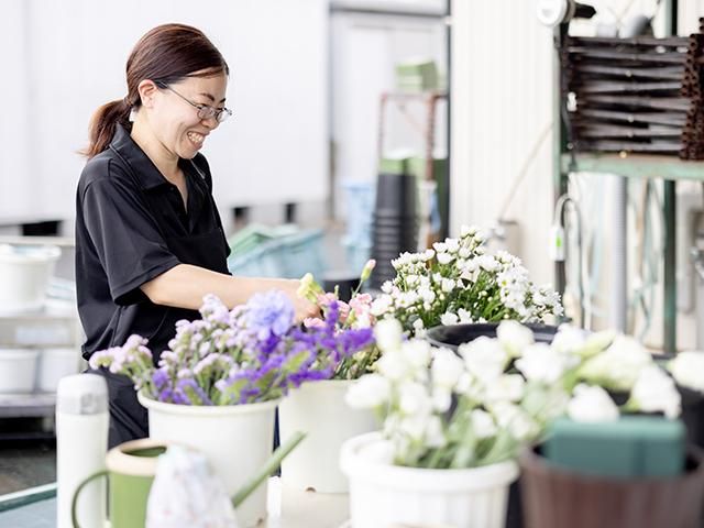 内勤/お花/週3日~/時間帯も選べます/家庭やプライベートと両立/未経験可/車通勤可/扶養内勤務可/ 週3日~日数応相談&扶養内勤務OK! 家庭やプライベートと両立しながら、新しいお仕事にチャレンジしてみませんか? 現在、幅広い世代の男女スタッフが活躍中! 「お花が好き」「植物が好き」「人の役に立ちたい」 そんな方は、ぜひご応募ください。 『フルーツ&フラワーせきね』は生花祭壇をはじめ、 花によるセレモニーの式場装飾、空間演出のお手伝いをしている会社です。 葬儀花といえば白菊を思い浮かべるかもしれませんが、それだけではないんですよ。 色とりどりの季節の花や、故人様のお好きな花も使用し、記憶に残る祭壇をつくりあげています。