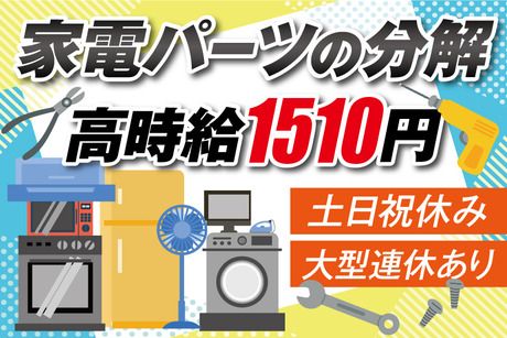 職種/仕事内容 | 仕事内容 【注目ポイントまとめました!】 #不要な家電をリサイクル!SDGにも貢献♪ #高時給1510円&昇給ありでしっかり稼げる! #休みも充実!年間休日123日&大型連休あり #急な出費も安心!週払い対応可(規定有) 【お仕事内容はコチラ!】 電動ドライバーやニッパーなど 身近な工具を使用して家電の分別作業。 ▼ベルトコンベアに家電を流す ▼工具ででパーツを取り外す ▼取り外したパーツを箱にまとめ、台車で運搬 例/洗濯機の場合 上蓋を外す→水槽を外す→モーターを抜く のように各工程に分かれており 2時間毎にローテーションしながら進めていきます◎ 【無理なく続けられるヒミツ◎】 バラバラにする作業なので、 製造よりも神経質に作業をしなくて良いのもポイント! ※エアコンや冷蔵庫、洗濯機などを扱います 約1ヶ月間はベテランスタッフと一緒に 作業をしていただき、その後独り立ち☆ 一人でのモクモク作業中心ですが そばには同じチームの先輩がいるので 不明点もすぐに確認できます! 【働きやすさと待遇、どちらも妥協ナシ!】 ・安心!丁寧な研修&定期的な安全教育研修あり ・直雇用実績あり!長期で腰を据えて働ける◎ ・無線LAN完備!休憩中も気にせず楽しめる★ ・残業はシフト制!事前決定式なので予定が組みやすい♪ ・空調完備の職場なので年中快適に働けます! 【職場について☆】 不要になった家電部品を再資源化! 部品が新しい製品に生まれ変わる! 働きながら社会貢献もできる”エコ”なお仕事。 「機械いじりがすき」 「おもちゃを分解がするのがすきだった」 そんな方なら楽しくお仕事できます☆ ※20代、30代、40代の男性スタッフ活躍中! ※当社スタッフも多数在籍! ※入社日はお気軽にご相談ください◎ |