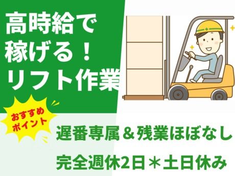 <高時給1500円!遅番専属★>生活用品メーカーでのリーチリフト作業◎車通勤OK&土日休み♪