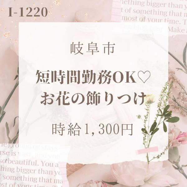 職種/仕事内容 | 仕事内容 短時間勤務OK!お花の装飾スタッフ募集♪ 【お仕事内容】 ・花祭壇や花束の飾りつけ、供花の作成 ・お花を保管している倉庫内でのシンプルな作業です 【働きやすいポイント】 ・10:00~16:00の短時間勤務!週3日からOK ・扶養内勤務OKで家庭と両立しやすい♪ ・残業なしでプライベートも充実 ・20代~60代まで幅広い世代が活躍中! 男女問わず歓迎 【その他】 ・正社員登用制度あり!キャリアアップも目指せます ・事前の職場見学も可能です。 お気軽にお問い合わせください! お花が好きな方や手先が器用な方にぴったり♪ 未経験の方も歓迎です! |