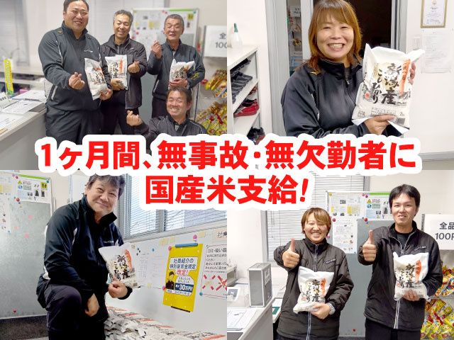 待遇・福利厚生 | 【保険制度】 雇用保険、労災保険、健康保険、厚生年金 【福利厚生】 待遇 諸手当 昇給 賞与(年2回) 社会保険(健康保険、厚生年金、労災保険、雇用保険) 有給休暇(入社6ヶ月経過後) 育児休業、介護休業 退職金 交通費規定内支給 財形預金 永年勤続表彰 制服貸与 マイカー通勤OK 大型免許・中型免許・フォークリフト資格取得補助 各種物品購入補助 引越し補助(条件あり) 1か月間、無事故・無欠勤者に国産米支給 |