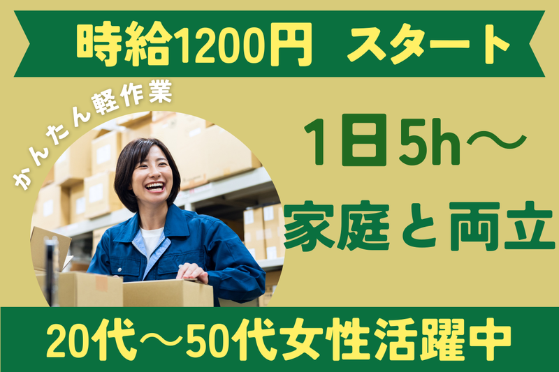 仕分けメイン♪女性スタッフ活躍中★1日5h~で家事と両立◎