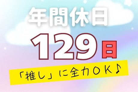 休日休暇 | 休日 休日:土日祝 ※年に数回土曜日出勤となる場合があります。 長期休暇あり:GW・夏季・年末年始 年間休日日数:129日 ◇ 会社カレンダーによる ◇ 有給休暇(初年度10日間~最大20日間付与) ◇ 慶弔休暇(1~7日間) |