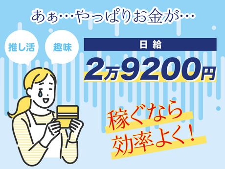 給与 | 日給29,200円 給与 日給 2万9200円 (一律手当を含む) *夜勤手当1回6000円含む 交通費:通勤交通費全額支給 【給与例】 給与例 【月収例】 1勤務2万4000円×月8日 =月々19万2000円の収入。 |