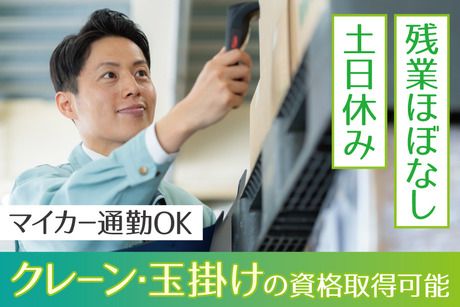 【月収27.6万円可】残業ゼロ&土日はお休みで安定収入◎働きながら、玉掛け・クレーン免許が会社全額負担で取得可能!