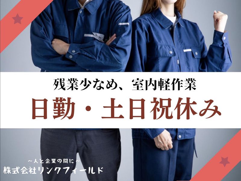 職種/仕事内容 | 仕事内容 手のひらサイズの製品を機械にセットしてポチっとしたりの製造や、検査、仕分け、検品などの簡単作業です! ≪未経験歓迎!未経験活躍中≫ 一人暮らししたい!お金貯めたい!そんな志望動機も大歓迎◎嬉しい寮費無料です! ◆ご用意しているお仕事は他にも! 「製造補助」「軽作業」「仕分け」「荷物搬入」「フォークリフト」「金属部品のコーティング」「製造オペレーター」「製品検査」など株式会社リンクフィールドは、あなたの希望に合ったお仕事をご紹介します!まずはご相談から、お気軽にご連絡ください。 ◆こんなスタッフが活躍中! カフェ・コールセンター・スーパー・レストラン・コンビニ・清掃・事務・ドライバー・警備員など、従業員の前職は様々!今までの経験も活かせますよ! ◆福岡県内はもちろん、荒尾市、神埼市、筑後市熊野、久留米市田主丸、大牟田市、鳥栖市、八女郡、朝倉郡などのエリアにもお仕事がございます。他にもいろんなお仕事を取扱っています。まずは専任担当があなたに寄り添ってお話しをさせて頂きます。お気軽にご相談ください。 |