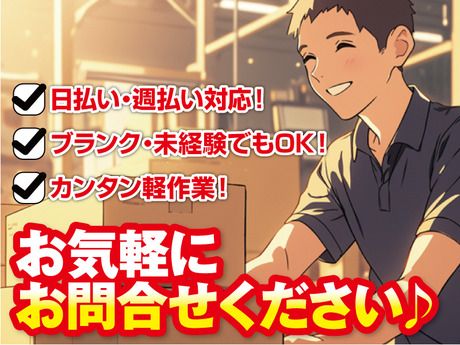 職種/仕事内容 | 仕事内容 ◆リフト作業がメインのお仕事!食品倉庫内での仕分けやピッキング♪ 食品倉庫内での軽作業です。 具体的には… ・商品の入出庫作業 ・在庫確認 ・仕分け ・ピッキング ・検品 などの業務になります。 ※倉庫内での業務になりますのでリフトを使っての作業があります。 ◆日勤のみの勤務!週3~勤務OK!土日祝休みで私生活も◎♪ 勤務時間は固定シフト制なので安定した、生活リズムを保つことができます♪ また、土日祝休みで&ほぼ残業なし!プライベートや趣味の時間を十分に確保でき、充実した生活を送ることが可能! あなたのライフスタイルに合わせた働き方が実現できます。 週5日でしっかりと稼ぎたい方も、週3日で他の仕事と掛け持ちしたい方も大歓迎です。 ◆黙々作業が好きな方にオススメです。 リフト操作は安全運転が第一です。 商品管理は少し時間がかかっても正確さが第一。 そのため、真面目にコツコツと頑張れる仕事で力を発揮できる方に ぜひお願いしたいお仕事です。 もちろん勤務中ずっと集中しておくのは大変だと思いますので、 リラックスするときはリラックスしてくださいね。 ◆初めての派遣スタッフとしての勤務、そんな方にも安心いただけるよう応募段階でしっかりご説明します。 応募は来社も履歴書も不要で対応します! 応募シートをもとに、こちらからご連絡致します。 その際にお電話でご希望をうかがい、お仕事の詳細をご説明します。 ご納得いただければ、職場見学なども可能です。 実際に職場を見てから勤務するかを決めていただけるので、 入社後にイメージと違うということも少ないと思います。 |