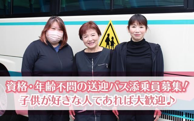 【八尾営業所】支援学校の添乗員募集!子どもたちの笑顔のそばで、やさしさを仕事にしませんか!未経験歓迎 子どもたちの「安心」を乗せて、 毎日の登下校をサポートしませんか? 支援学校に通う生徒さんが、 安全に楽しく学校へ通えるよう、 送迎バスの車内で見守りをするお仕事です。 車椅子の固定やシートベルトの確認など、 やさしさと気配りが活かせる業務です。 ◆こんな方におすすめ◆ ・子どもが好きな方 ・人の役に立つ仕事がしたい方 ・定年退職後も社会と関わりたい方 未経験でも大丈夫! 丁寧な研修があるので安心してスタートできます!