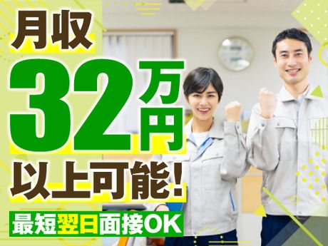 2交替勤務で月収32万円以上!製造未経験OK!20~40代の男女活躍中!マイカー通勤OK!