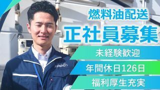 PR <年間休日126日 ><賞与3.5カ月支給><社員価格制度アリ> 《20~40代が活躍中 》 創業80年を迎える福利厚生も充実の安定企業で働きませんか? ◆賞与年2回昨年度実績3.5カ月分 灯油・軽油・重油などの各種燃料をお届けする「配送スタッフ」を募集しています ◆経験者大歓迎 経験者は即戦力として優遇いたしますが、 「中型免許以上」をお持ちの方で、前向きに仕事に取り組める方であれば まったくの未経験から始めたい方も、OKです 先輩スタッフが親切・丁寧に教えますよ ◆資格支援制度もあります 資格取得のための費用を会社負担、勉強会実施など お仕事に必要な資格取得のサポートも行ってます 安定したエネルギー業界で長く一緒に働きませんか?