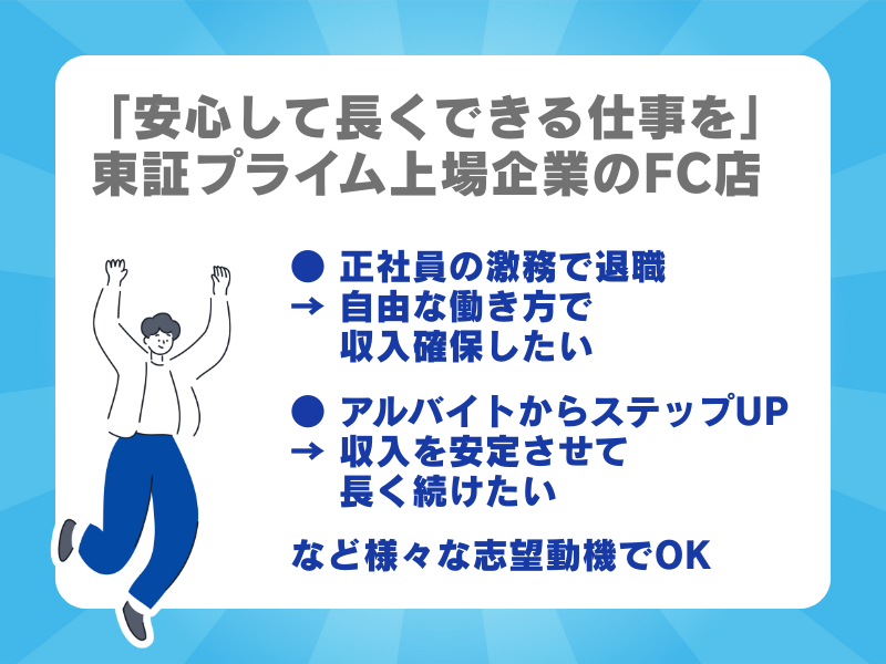 職種/仕事内容 | 仕事内容 生活に合わせ週2日~5日まで柔軟に対応◎ 【営業ナシ】ルート配送で安定収入! 未経験から正社員へ!フリーター歓迎! 30代~40代が活躍中✨ ○ 土日祝は完全休み&長期休暇あり ○ 社用車で1人配送だから気楽 ○ 台車で運ぶから身体への負担も少なめ ○ PC入力ができればOK! ━━━━━━━━━━━━━━━━━━━ 【お仕事内容】 当社のお取引先である企業様・店舗様へ ボトルウォーターの納品業務をお願いします。 ⏩ 具体的には ●ボトルウォーターを納品 ●基本は所定のラックに置くだけ ※まれに、ボトルが空の場合は ボトルの付け替え対応あり ●ウォーターサーバーの 簡単なメンテナンス作業 ●帰社後、下記の簡単なPC作業 ・報告書の入力 ・在庫チェック ⏩ 配送について 社用車を使用しての訪問となります。 ・配送エリア:静岡県中部~東部エリア (藤枝~沼津・御殿場周辺) ※希望を考慮して担当を決定します ・訪問件数の目安:1日5~10件程度 ✅ お客様先では挨拶や ちょっとした会話はありますが 「商品を売る」営業行為は一切ナシ! 決まったお客様への納品業務が中心なので 未経験の方でも安心して始められます。 ✅ ボトル(20kg程度)も原則台車を 使用するため、体力的な負担も最小限。 下置き式サーバーも扱っているので 「持ち上げる」作業は少なめです◎ ━━━━━━━━━━━━━━━━━━━ 【ここがポイント!】 「営業は苦手だけど人と関わりたい」 「安心して長く続けられる仕事がいい」 「将来は正社員として腰を据えたい」 そんな方を応援します! 東証プライム上場企業のFC店として 安定した業務量と収入を確保。 正社員登用制度もあり、未経験からの キャリアアップも積極的に応援! さらに、 ◎土日祝は完全休み ◎夏季・冬季の長期休暇もあり 地元で安定した仕事を探している方に◎ ━━━━━━━━━━━━━━━━━━━ 必要なのは、 ■普通自動車免許(AT可) ■PCの基本スキル(文字入力程度) そして「やってみたい」という 前向きな気持ちだけ! まずはお気軽にご連絡ください! ━━━━━━━━━━━━━━━━━━━ |