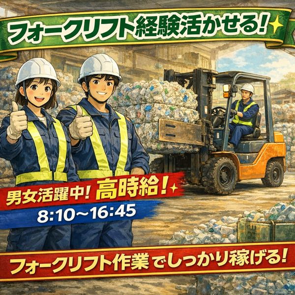 職種/仕事内容 | 仕事内容 【フォークリフト保持者、経験なくてもOK!徐々に慣れて経験積める!】 ペットボトルリサイクル工場での作業です★ 製造工程or完成品工程でのフォークリフトの業務をお願いします★ 専属勤務になりますので、事前お休み希望OK! フォークリフト業務と手作業の業務が半々になります★ ☆使用済みペットボトルの塊をフォークリフトで移動 ☆ぺットボトル・使用済みのペットボトルをためているフレコンバックをフォークリフトで移動 ☆完成品が詰められたフレコンバックの移動 ☆フレコンバックの交換を行います いずれかのお仕事をお任せします ブランクOK 実務経験ないOK まずは、お問い合わせください ☆フォークリフト資格ない方などの問い合わせもお待ちしております ★興味がある方は、資格取得考えている方もご相談ください :+:・-・:+:・-・:+:・-・:+:・-・:+:・-・:+: 【おすすめポイント】 ❖20代~30代男性スタッフ活躍中♪ ❖深夜時給で高時給1938円が実現! ❖ブランクOK! ❖月収26万円以上も! ❖交通費全額支給! ❖休み希望提出OKでプライベート両立〇 :+:・-・:+:・-・:+:・-・:+:・-・:+:・-・:+: |