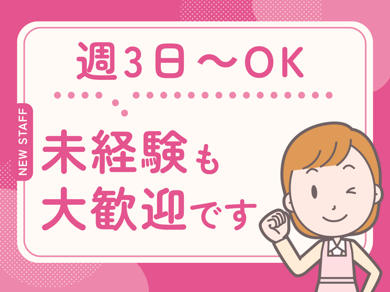 勤務時間 | 固定時間制 勤務時間詳細 ⏰9:00~17:00(休憩1h) ※残業なし ★週3~4日程度 ★シフトはご相談ください ★扶養内勤務OK |