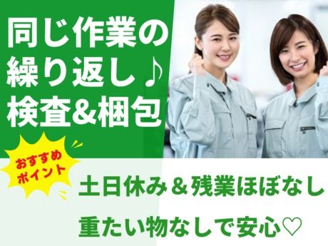 <★土日休み!女性活躍中♪未経験歓迎>モクモク検査・梱包◎シンプル作業で残業ほぼなし!