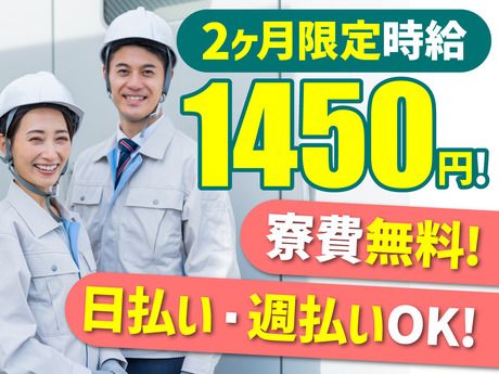 【特別時給1450円(2ヶ月間)】【寮完備(寮費無料)】など嬉しい特典あり!未経験のご応募も歓迎!