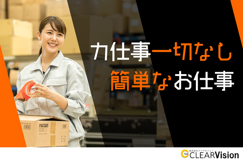 職種/仕事内容 | 仕事の内容 物流倉庫内でのシンプルな軽作業です。 未経験の方も安心して始められる環境が整っています。 ・梱包作業(軽い部材の箱詰め) ・ピッキング作業(伝票を見ながら部材を取り出すだけ) ・立ち作業・コツコツ作業が中心 ・静かな作業環境で、集中して取り組めます 【ここがポイント】 ★3月末までの短期募集 ・未経験OK(先輩スタッフが丁寧にサポート) ・職場見学可能(実際の作業を事前に確認できます) ・大手企業での勤務なので安定感あり ・工場内は空調完備で快適 ・社員食堂・休憩室あり 【クリアビジョンが選ばれる理由】 クリアビジョンは、 “働きやすさ”と“安心感”を大切に、 あなたの新しいスタートを全力で応援します。 ■ あなたに寄り添うサポート体制 ■ ◎担当が最初からずっと同じ! 就業前のご相談から配属後のフォローまで、 一人の担当者がしっかりサポートします。 ◎職場トラブルや環境のことも、すぐ相談OK! ◎無期雇用、長期的な働き方へのステップを応援! ■ 充実の福利厚生で安心 ■ ●業界初!入社時に有給休暇3日付与! ●日払い・週払い制度あり ●寮完備案件あり(規定有) ●勤続ボーナスあり ●退職金制度あり まずはお気軽にご相談ください。 あなたの“新しい一歩”をクリアビジョンが全力で応援します! |