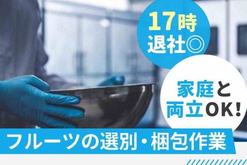 PRコメント ―――――この求人のPOINT――――― ・土日祝はお休み◎残業ナシの17時退社♪ ・「西船橋駅」から無料送迎バスで10分! ・時給1500円で月収23万円以上可能♪ ・未経験でもOK!モクモク軽作業♪ ――――――――――――――――――― 【仕事内容】 【主な仕事内容】 カットフルーツを販売する企業のチルド倉庫での軽作業をお任せします。 倉庫内は約15℃で、寒すぎず快適に働ける環境です! <作業の流れ> ラインで流れてきた商品の ⇒品質チェック⇒計量⇒袋詰め をお願いします。 そのほか、機械の清掃などの簡単な作業もあります。 <扱う商品> ブルーベリーやアップルマンゴーなどの カットフルーツを扱います。 ◆品質チェックや計量のコツなど、先輩がしっかり教えます。 未経験の方も安心してスタートできます♪