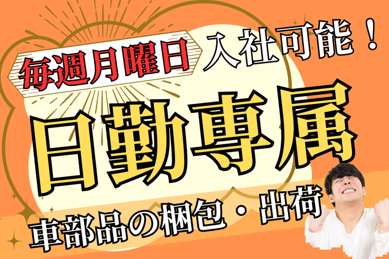 職種/仕事内容 | 仕事内容 \日勤専属で月25万円以上可♪/ 広島で軽作業のお仕事しませんか? 自動車用の部品を梱包、 包装する作業です。 出荷前の準備として部品を包む、 箱に詰めるなどをお願いします。 <詳しい作業内容は・・・> ■部品調達 タブレットに表示される品番を見て、 部品を 棚からピックアップします。 ホームセンターの売り場から、 商品を取りだすような感じです。 ■部品積み上げ 部品を木製パレットに積み上げ、 ラップのようなビニールで ひとまとめに包みます。 ■箱詰め 部品を種類ごとに分けて、 箱に詰めていきます。 ■出荷場所へ運搬 ハンドリフトや台車で出荷場所まで運びます。 部品は大きいものでマフラーやバンパー、 樹脂でできたドアの内張部分など! <他、こんな作業もあります!> ■種子の除去 段ボールに付着した植物の種子を取り除きます。 (綿毛のような種子です!) 稲の種子が、海外出荷用に梱包された 段ボール箱に付着するため 掃除機で吸い込んで取り除きます。 集じん部分をリュックのように背負い、 スティック掃除機で箱についた種子を取る作業です。 (掃除機はだいたい5キロ前後の重さです。) 日本の植物の種子が付着すると 出荷できないため取り除くお仕事。 海外出荷部品の部署に 配属された場合に行う作業の一つです。 日勤専属!だけど安定収入の職場。 「前の職場は日勤で週5働いても手取りが全然なかった・・・」 「交替勤務は体が合わないな・・・」 という方にオススメ! こちらの職場は日勤のみだけど、 残業が適度にあるため安定収入! 交替勤務は苦手だけど稼ぎたいかたにオススメです。 =寮費が安い!= ■社宅費用が格安の求人です!■ 通常、広島で一人暮らしをすると 家賃が5〜6万円かかりますが、、、! |*寮費格安で使えるお金がたくさん!*| 浮いたお金で何をしますか? >推し活に全力で使ったり >貯金して車を新しく購入したり >旅行でグレードの高いプランにしたり いろんな事ができちゃいますね! 転職を機に、好きな事に使うお金を増やしませんか? 。〇日勤専属で働きやすさ〇。 すっごくバリバリ働きたいわけではないけれど・・・ フルタイムで安定した収入が欲しい! そんなあなたにオススメです。 こちらのお仕事は日勤専属! |夜勤は苦手 |深夜手当はいらないからそこそこ働いて、 それなりのお給料が欲しい! これが当てはまるあなたにイチオシ求人です! |