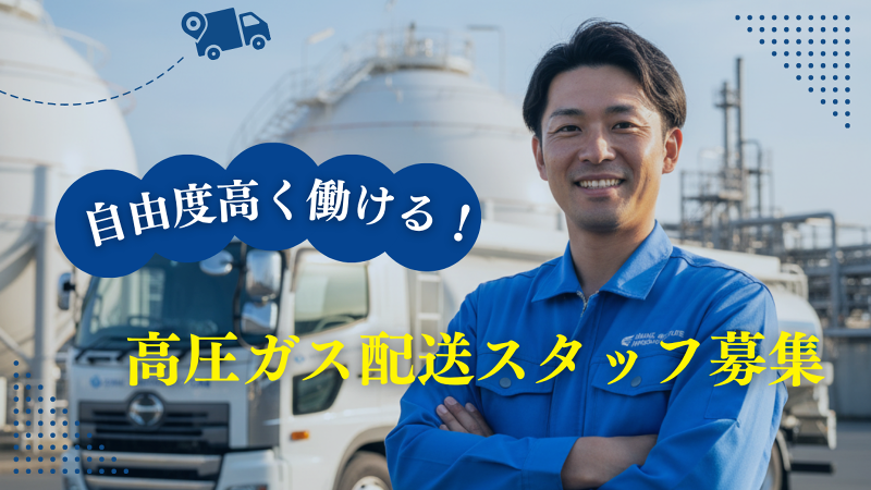対象となる方 | 求める人材: 【必須】 ・準中型自動車免許 【歓迎】 ・高圧ガス販売主任者(第2種) 2トントラックさえ運手できれば、必要な知識・経験やスキルは問いません! 未経験の方も大歓迎です! |
