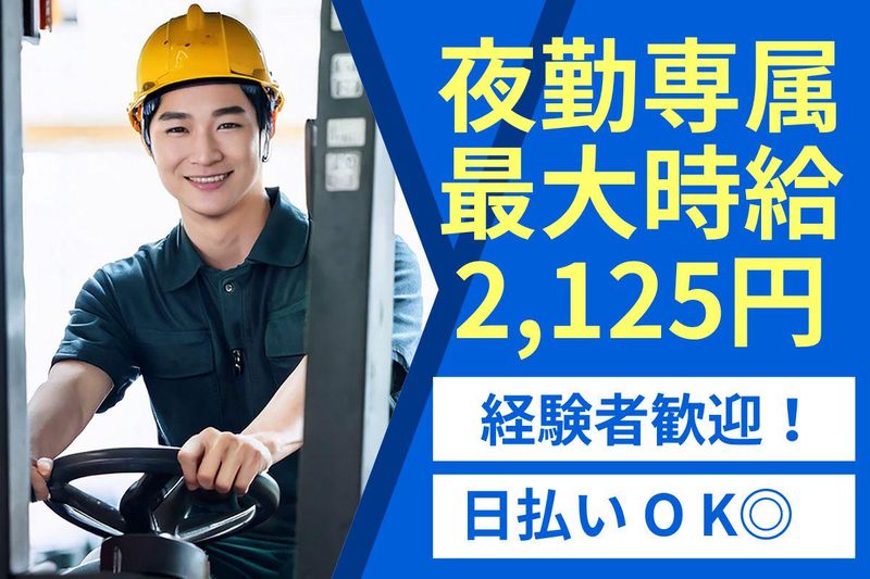 職種/仕事内容 | 仕事内容 ⭐夜勤専属募集 ⭐月収33万円~可能 ⭐夜勤時給2125円 【仕事内容】 ・リーチリフトでの製品パレットの運搬・格納 ・出荷指示書に基づくピッキング・仕分け ・入荷・出荷時の積み下ろし対応 ・空パレットの回収・整理 |