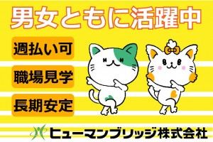 職種/仕事内容 | 仕事内容 ■■-■■ ・早起きが苦手な方 ・夜型さん 固定準夜勤のお仕事が あります!! 20代・30代・40代の 幅広い年代の男女が活躍中 ■■-■■ 自動車部品製造工場の クリーンルームで 製品の 「キズ」や「汚れ」がないかの チェックをお願いします! 扱う製品は 自動車のヘッドライトのレンズです! 立ち作業でのお仕事ですが 製品は片手で持てるサイズで とても軽いものなので 体に負担が少なく 女性でも安心して 働ける作業内容です。 チェック後、問題なければ 箱詰めしていきます。 箱詰めは道具を使用して行います。 工場勤務初めてさんも歓迎です! しっかりした教育体制があり マニュアルもあるから 安心して始められる! 未経験から活躍されている方も 多数いらっしゃいます! 冷暖房完備で一年中快適に お仕事できるクリーンルームだから 寒がりさん・暑がりさんにも オススメな環境です 固定準夜勤だから 生活リズムが整いやすく 日中フリーな時間ができるから 病院や役所など行きやすいのも 人気のポイントです ★オシャレが楽しめる職場★ 服装自由・髪色自由・ネイルOK あなたらしくお仕事出来る! ★働きやすい環境★ 休憩室には給水機があり 水・お茶飲み放題! さらにジュース・コーヒーは 1日2杯までは無料です ^^) _旦~~ 自販機は最安値設定で利用可能 冷蔵庫あり ロッカーあり 休憩室には椅子もありゆっくり オフタイムを過ごせます 働きやすい環境だから 定着率がよく 派遣スタッフの半数が 1年以上勤務継続中です(^^) 県外や遠方の方には 寮対応も可能です! お気軽にご相談ください 交替勤務がしたい方も ご相談ください★ 【ヒューマンブリッジの強み】 ・各種社会保険完備 (労災・雇用・健康・厚生年金・介護) ・毎週3万円までの週払い可能(規定あり) ・交通費 上限11,800円まで別途支給 ・遠方の方でも安心!WEB面接実施中! ・職場見学で実際に働く場所を見れます ・有給休暇制度あり ・資格取得支援制度あり ●ー● ヒューマンブリッジ派遣スタッフの年齢割合 ・10代・・・ 8% ・20代・・・ 30% ・30代・・・ 35% ・40代・・・ 20% 男女比・・・男性6:女性4 ●ー● ハローワークには無い 新着のお仕事も多数掲載中!! 他のお仕事も見たい方は1番上の 「ヒューマンブリッジ株式会社」をタップ! |