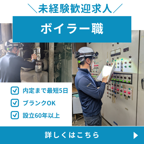 職種/仕事内容 | 仕事内容 \未経験から“エネルギーの専門職”を目指せるチャンス!/ フォークリフト免許がなくても大丈夫! 入社後に【費用全額会社負担】で取得できます。 さらに、国家資格「ボイラー技士」を取得すると、 【月21,600円の資格手当】を毎月支給! 【ボイラー職ってどんな仕事?】 経験ゼロから始めた社員が多数活躍中。 工場で使う蒸気をつくるボイラー設備の運転・点検・管理を行う仕事です。 専門的に見えますが、 マニュアル完備&先輩がマンツーマンで指導する“育成前提”の環境なので安心です。 〜・〜・〜・〜・〜・〜・〜・〜・〜・〜 【担当していただく業務】 木材チップを燃料に動くボイラー設備の運転や管理業務をお任せします。 地域のエネルギーを支える、社会貢献度の高いポジションです。 【主な作業内容】 ・設備のモニターを見ながら数値を確認 ・フォークリフトで木くずを運搬 → 2名体制で作業するので、常にサポートがあり安心! 〜・〜・〜・〜・〜・〜・〜・〜・〜・〜 【休日・休暇 】 週休2日制 土日休み 有給休暇※入社半年後付与 長期休みあり(お盆・正月) 介護休暇 育児休暇 慶弔休暇 【福利厚生・待遇】 社保完備 退職金制度 定年制あり 再雇用制度 交通費支給 マイカー通勤OK 無料駐車場 資格支援制度 【入社後の流れ】 〜・〜・〜・〜・〜・〜・〜・〜・〜・〜 ◎ 1日目~:先輩社員と一緒に実務を学ぶOJTがスタート ◎ 数週間:業務に慣れながら資格取得に挑戦 ◎ 3~6ヶ月:自立して一人で担当できるように成長 その後は資格取得・キャリアアップのチャンスも豊富! 〜・〜・〜・〜・〜・〜・〜・〜・〜・〜 |