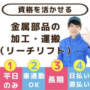 【フォークリフト資格を活かせる】金属板の加工・運搬 株式会社シティトラスト本店 金属板の加工・運搬(フォークリフト) ★★新規登録キャンペーン実施中★★ シティトラストに初めて登録する方へ 嬉しいプレゼントキャンペーン中◎ ↓プレゼント内容や詳細は下記へ↓ https://cityjob.sakura.ne.jp/campaign/m/m_campaign.html 〇WEB登録・電話面接OK! 〇登録時に履歴書不要 〇交通費規定支給 〇日払い・週払いOK(規定有) ≪例えばこんな方が活躍中です≫ ●フォークリフトの資格・経験を活かしたい方 ●日払い・週払いですぐお給料が欲しい方 ●残業なしでお探しの方 ●フルタイム希望の方 ●しばらくお仕事から離れていていきなり正社員は不安な方 ●神戸市・三木市・小野市・明石市などから通勤希望の方
