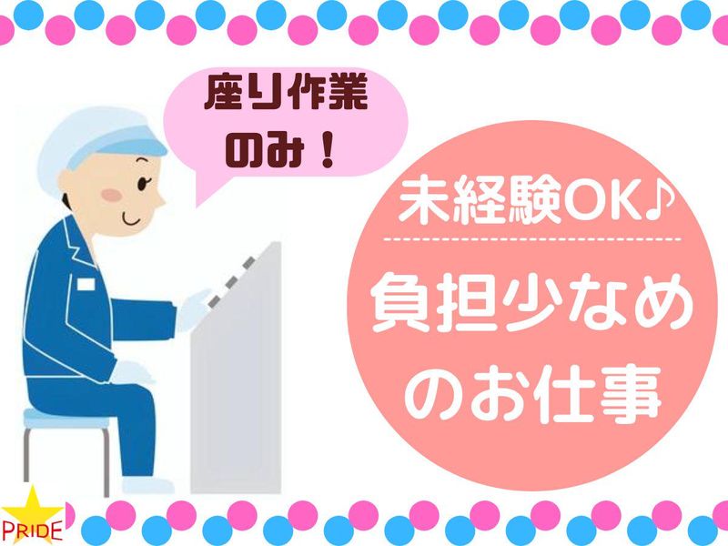 職種/仕事内容 | 仕事内容 【お仕事番号:10313】 \カンタン軽作業staff大募集!!女性活躍中/ ✅資格や経験不要!未経験START大歓迎! ✅土日祝休み&残業なしのメリハリ勤務! ✅基本はイスに座りながらのお仕事! ✅力作業も一切ナシ&作業場は空調完備♪ ✅フルタイム勤務でも体への負担少なめ◎ - <仕事内容> 20代~40代の女性スタッフ活躍中! 化粧品容器やスプレーボトルの印刷・加工を 行う工場でのお仕事! \以下の作業を分担して行います!/ 1.商品を箱から出して、印刷機械のレーンに 商品を乗せていきます。 2.印刷機械に商品をセットしてペダルを 踏みます。 (ペダルを踏むと印刷が始まります) 3.印刷後の商品を乾燥機にセットします。 4.乾燥後の商品に印刷が正しくされているか チェックします。 印刷がされている箇所が正しいかなど、 ザックリとした確認でOKです◎ 5.検品が終わったら商品を箱に梱包。 ー☆ー☆ー☆ー☆ー☆ー☆ー 【POINT】 ☆作業場は空調完備!夏でも冬でも快適に 作業できるのが特長です♪ ☆イスに座っての作業なので、フルタイム 勤務でも負担少なく働けます◎ - <この仕事に関するQ&A> Q.雇用形態は何ですか? A.派遣 Q.職種は何ですか? A.工場・検品・生産管理 Q.仕事の特徴は? A.未経験歓迎 交通費規定支給 バイク・自転車通勤OK 土日祝休みの週5日勤務 1日7~8時間勤務 髪型・髪色自由 #ほかにもご希望に合わせてお仕事多数紹介できます! |