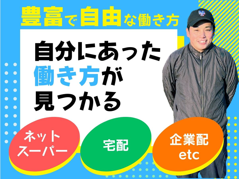 勤務時間 | 勤務時間詳細 ⏰8:00〜20:00の間でシフト制 ⭐配送経験者、若しくは車両保有の方は 週1〜勤務OK/直行直帰OK ⭐ライフスタイルに合わせて 調整可能です! |